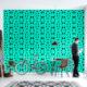 Blue and green dots and vertical lines on green mint background