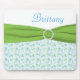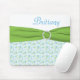 This pretty aqua blue and lime green floral mousepad has a matching faux ribbon and crystal brooch. Customise it with your own name, monogram, or other text.