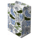 Blue and Green Hand Drawn Floral Block Print Medium Gift Bag