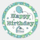 Blue and Green Happy Birthday Classic Round Sticker