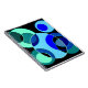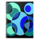 Colorful and geometric abstract pattern, various shades of green and blue intersecting circles on black background