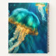 Blue, green, and gold jellyfish drift through blue ocean waters on this notebook. Perfect for anyone who loves the ocean and marine life.