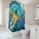 Blue, green, and gold jellyfish drift through blue ocean waters on this shower curtain. Perfect for anyone who loves the ocean and marine life.