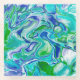 Blue and Green Marble Fluid Art Abstract Glass Coaster
