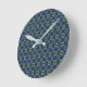 Decorative blue patterned accented with green wall clock. The blue background can be switched to any colour to match your decor.