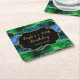 Blue and Green Peacock Agate Birthday Square Paper Coaster