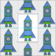 This space rocket pattern comes with a simple rocket ship in a blue and green colours. The rockets are on a white background. You can change the background colour if you want.