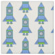 Blue and Green Rocket Space Pattern Kids Fabric