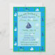 Green and Blue nautical themed sailboat, whales, anchors oceanic baby shower invitations for a boy's baby shower.