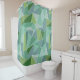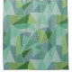 This shower curtain features an illustrated, abstract geometric design inspired by sea glass. The colours are shades of blue and green and the design is a angular, mosaic repeating pattern. Perfect accent to your beachy, coastal or waterfont theme decor.