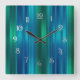 Blue and Green Striped Tree Skirt Square Wall Clock