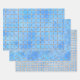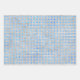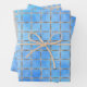 Contemporary gender-neutral geometric-themed gifts and party supplies. A variety of geometric square shapes on a beautiful mottled blue background for each gift-wrapping sheet in the set of 3. The blue background can be replaced with a background of your choice to personalise and show your style. Blue and Grey Geometric Wrapping Paper Sheets