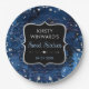 Blue and Iridescent Glitter Letters Sweet 16 Paper Plate