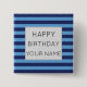 Blue And Light Blue Striped Happy Birthday 15 Cm Square Badge