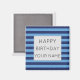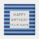 A cool light blue and light blue striped pattern and a Happy Birthday text template. Click personalise to add your name.