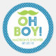 Blue and Lime Green Polka Dot Oh Boy Baby Shower Classic Round Sticker