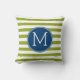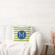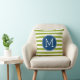 Blue and Lime Striped Pattern Green Monogram Cushion