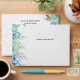 This wedding envelope has a beautiful design of watercolor flowers in shades of blue and mint green. The floral arrangement adorns one side of the envelope, creating a lovely contrast with the white background. On the back flap, you can find the return address written in a clear font while two hearts are placed on the back bottom. The inside of the envelope is of a soft blue colour that matches the flowers.