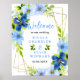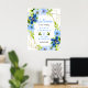 This beautiful and elegant wedding welcome sign features watercolor baby blue and navy blue flowers with foliage. The text combines handwritten script and serif fonts for a stylish and modern look. This is perfect for a spring or summer rustic wedding.
