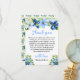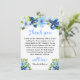 This beautiful and elegant wedding thank you card features watercolor baby blue and navy blue flowers with foliage. The text combines handwritten script and serif fonts for a stylish and modern look. This is perfect for a spring or summer rustic wedding.