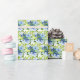 This fun and whimsical wrapping paper features watercolor baby blue and navy blue flowers with foliage.