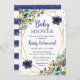Blue and Navy Summer Flowers Frame Baby Shower Invitation