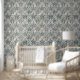 Bring the tranquillity of nature indoors with this blue and neutral-coloured leaf pattern wallpaper. Perfect for adding a serene and elegant touch to any room.