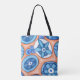 Blue and Orange Abstract Flowers Original painting Tote Bag