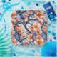 Flora and fauna scene featuring a small blue bird among orange coloured blossoms