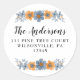 These custom printed round return address labels feature a watercolor style floral illustration in softer muted shades of blue and orange, making them perfect for fall or autumn weddings and special events.