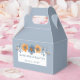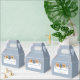 This custom printed wedding favour box features a light blue background and a watercolor style floral illustration in softer muted shades of blue and orange, making it perfect for fall or autumn weddings and special events. Use the template fields to easily personalise these party favour boxes with your information. Have more information you need to include? Select the CUSTOMIZE option to add additional text to these boxes.