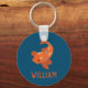 This keychain or keyring features an illustration of a koi goldfish in bold orange with your own name or other message in matching orange lettering all set against a navy blue background. Find coordinating koi themed gifts and products in the Koi Fish Collection from Asterisk Designs.
