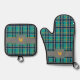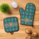 Blue and Orange Plaid Oven Mitt & Pot Holder Set