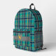 A rich turquoise base is crisscrossed by bands of deep navy blue, solid grey, and bright orange in this plaid that combines trendy colours and contrasts with a classic and cosy pattern. Customise the initial on the front pouch of this backpack with your own monogram to make this accessory uniquely yours.