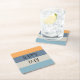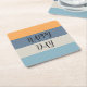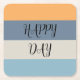 Blue and Orange Striped Happy Day Square Paper Coaster