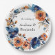Blue and Orange Watercolor Floral Wedding Paper Plate