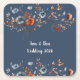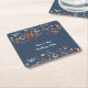 Blue and Orange Wildflowers Wedding Square Paper Coaster