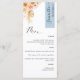 Why spend in place cards and menu cards when you can have an elegant All-in-one elegant Menu personalized with each guest name! Contemporary, simple and elegant design with exquisite watercolor floral detail in a beautiful blend of peach, orange, blush, dusty coral, cream and champagne hues. Modern hand written calligraphy elements. Stripe on the top right corner in blue tone with guest name in black. Back in same Blue as stripe. Ability to change both stripe color or back by selecting "customize further". NOTE: please an individual order for each menu by adding guest name into menu, add menu into shopping cart; then come back to menu, add second guest name, add menu to shopping cart...continue with this process with all guest names on your list. Zazzle does not receive guest names lists to print. For short first guest names add with your keyboard spacebar a few empty "spaces" before name to center. Design available in a variety of color choices. Part of our "Peach Floral Delight in Blue" collection with a variety of coordinating products available. Visit the entire collection at: https://www.zazzle.com/collections/peach_floral_delight_with_blue-119436951689312574