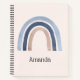 Spiral notebook with a cute and whimsical rainbow. Blue and peach watercolors.
