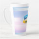 Customized latte mug in Blue Beach House design with sand bucket and beach ball.