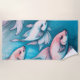 Blue and Pink Chalk Drawing of Fish Beach Towel
