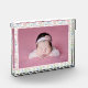 This sweet baby photo cube looks great in a nursery and makes a memorable gift for grandparents, aunts and uncles. The design features a a sweet pink and blue floral pattern with a place to insert your baby's photo.