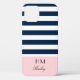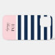 Stylish and trendy Nautical Pink and Blue stripes with Black initials monogrammed phone case