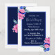 Personalised wedding invitations with pretty pink and blue watercolor flowers with white font. Elegant floral wedding theme.