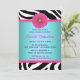 Blue and Pink, Zebra Bridal Shower Invitation