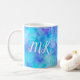 Monogrammed Blue and purple bokeh bubbles feminine coffee mug.