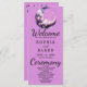 Presenting our Enchanted Twilight Wedding Program, a captivating blend of celestial allure and modern elegance designed to infuse your wedding ceremony with an enchanting atmosphere. The program features a mesmerising thistle purple background, providing the ideal backdrop for a striking blue and purple crescent moon. Adorned with ethereal blue and purple clouds, the moon is sprinkled with a celestial array of yellow, gold, and rose gold stars, creating a truly magical ambiance.