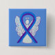 Angel awareness pin features the painting of a blue and purple awareness ribbon angel on a custom button pendant. Blue and purple shows support for paediatrics stroke and rheumatoid arthritis awareness. Blue and purple stripes awareness angel ribbon art lapel pins or buttons can be customised with personalised messages to make great cause buttons for fundraiser pendants for cancer or other causes, awareness pin gifts, or other special pendant events or awareness lapel pin for cause's occasions.