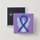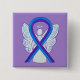 Angel awareness pin features the painting of a blue and purple awareness ribbon angel on a custom button pendant. Blue and purple shows support for paediatrics stroke and rheumatoid arthritis awareness. Blue and purple stripes awareness angel ribbon art lapel pins or buttons can be customised with personalised messages to make great cause buttons for fundraiser pendants for cancer or other causes, awareness pin gifts, or other special pendant events or awareness lapel pin for cause's occasions.