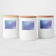 An elegant minimalist label for soap with a blue and purple watercolor background and white text. Features space for your company name, ingredients, business information, and more.
